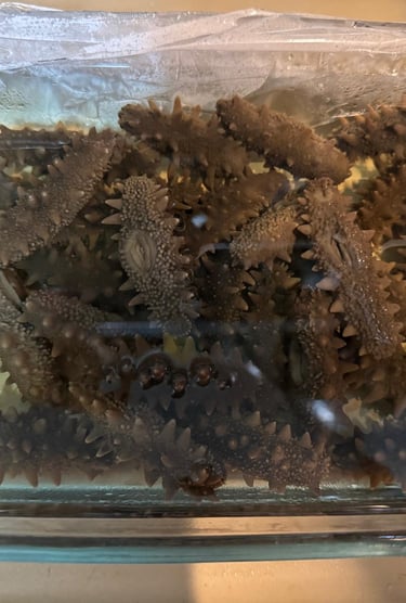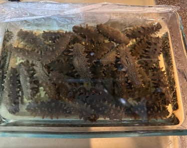 Change water: Change the water every 24 hours. The sea cucumbers will get soften slightly and expand to about double their size.