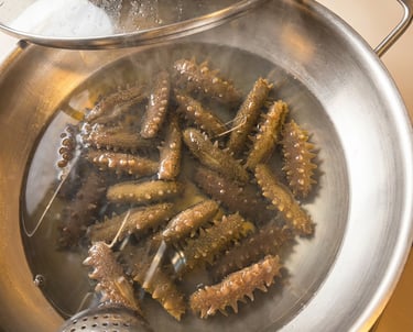 Cool down: Allow the boiled/steamed sea cucumbers to cool naturally to room temperature in the cooking water.