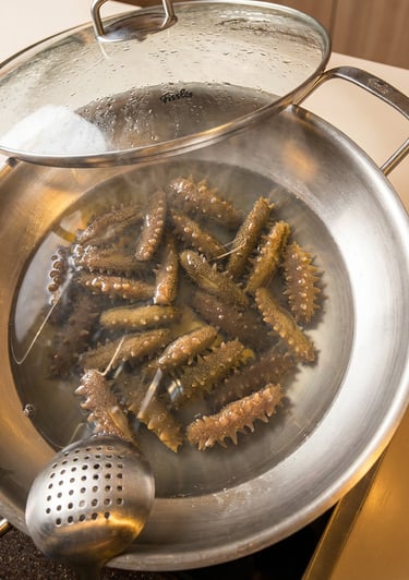 當5-6天繁複的過程完成後,你便可享用海参。用最簡單的烹調方法,如燉湯、釀入蝦膠/魚肉、鮑汁炆煮、佛跳牆、火煱,煮五谷類、粥或麫食,甚至蒸蛋,都不失為富營養的日常食譜。